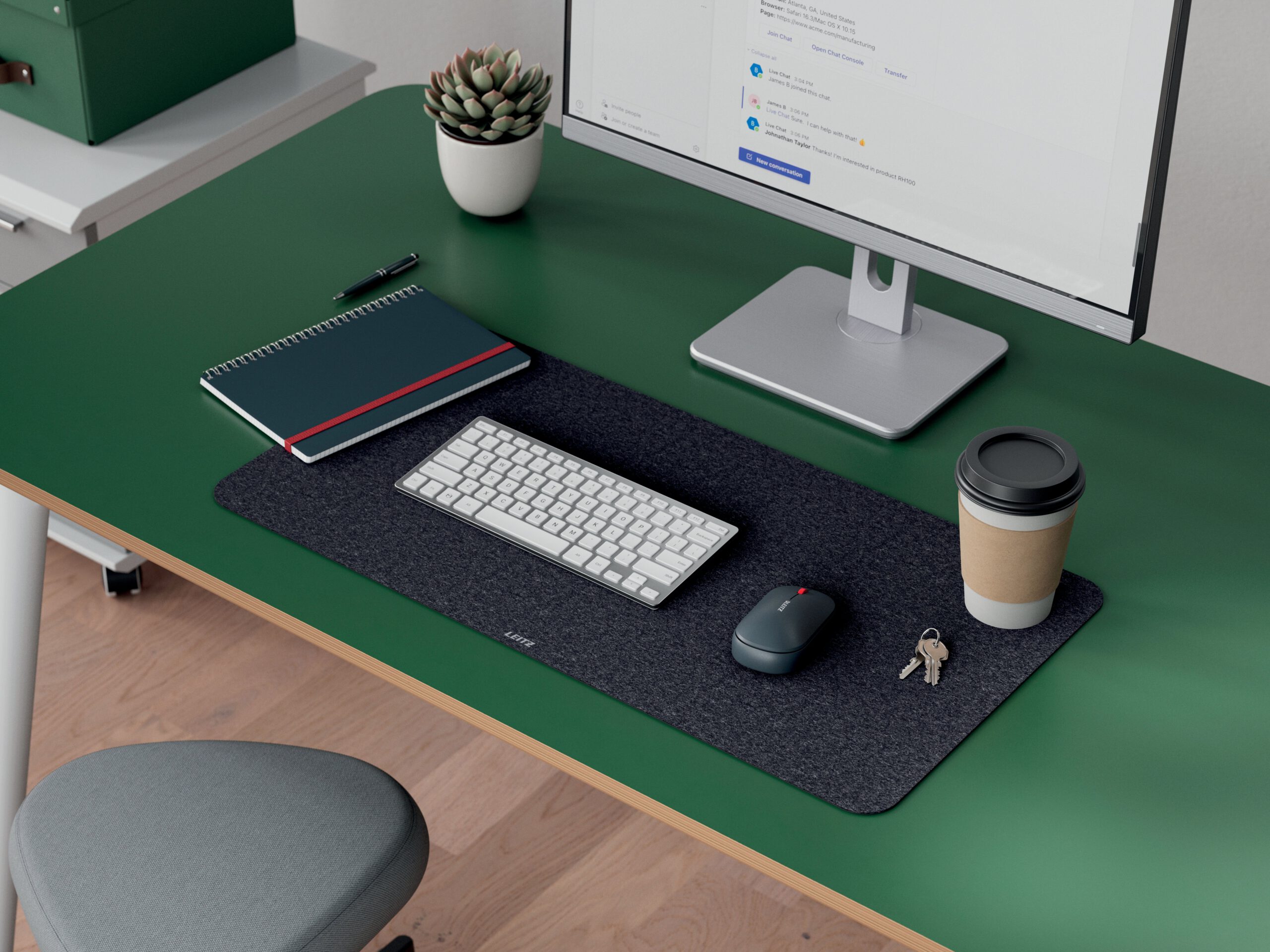 Die hochwertigen Leitz Schreibtischunterlage aus Leder oder Filz schaffen genau diesen Rahmen. Tastatur, Maus und Notizen bekommen ihren festen Platz. Gleichzeitig schützt sie die Oberfläche und bringt Ruhe ins Gesamtbild.